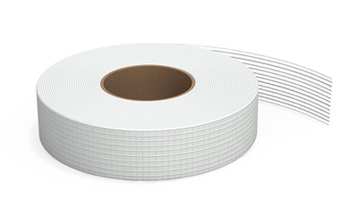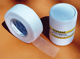 Cinta adhesiva de malla defibra de vidrio para aplicación sobre juntas de tabiquerÃas, uniones de volcanita, cielos de plancha de yeso, etc.